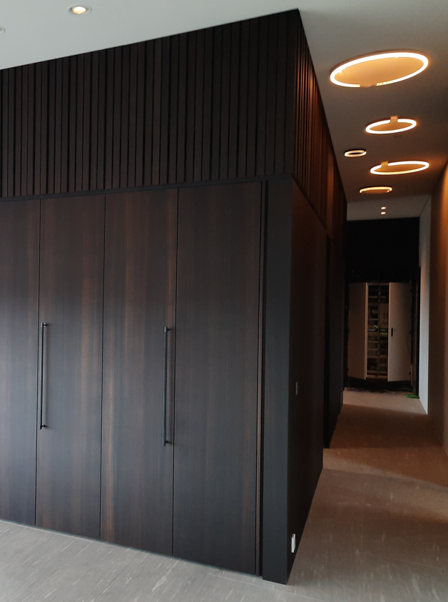 The scope of work included the supply and installation of complete furniture for the kitchen, dining area, living spaces, bedrooms, bathrooms, office area, and hallways. The project also included high-end entrance doors and internal doors integrated with decorative door panels, as well as wall cladding.